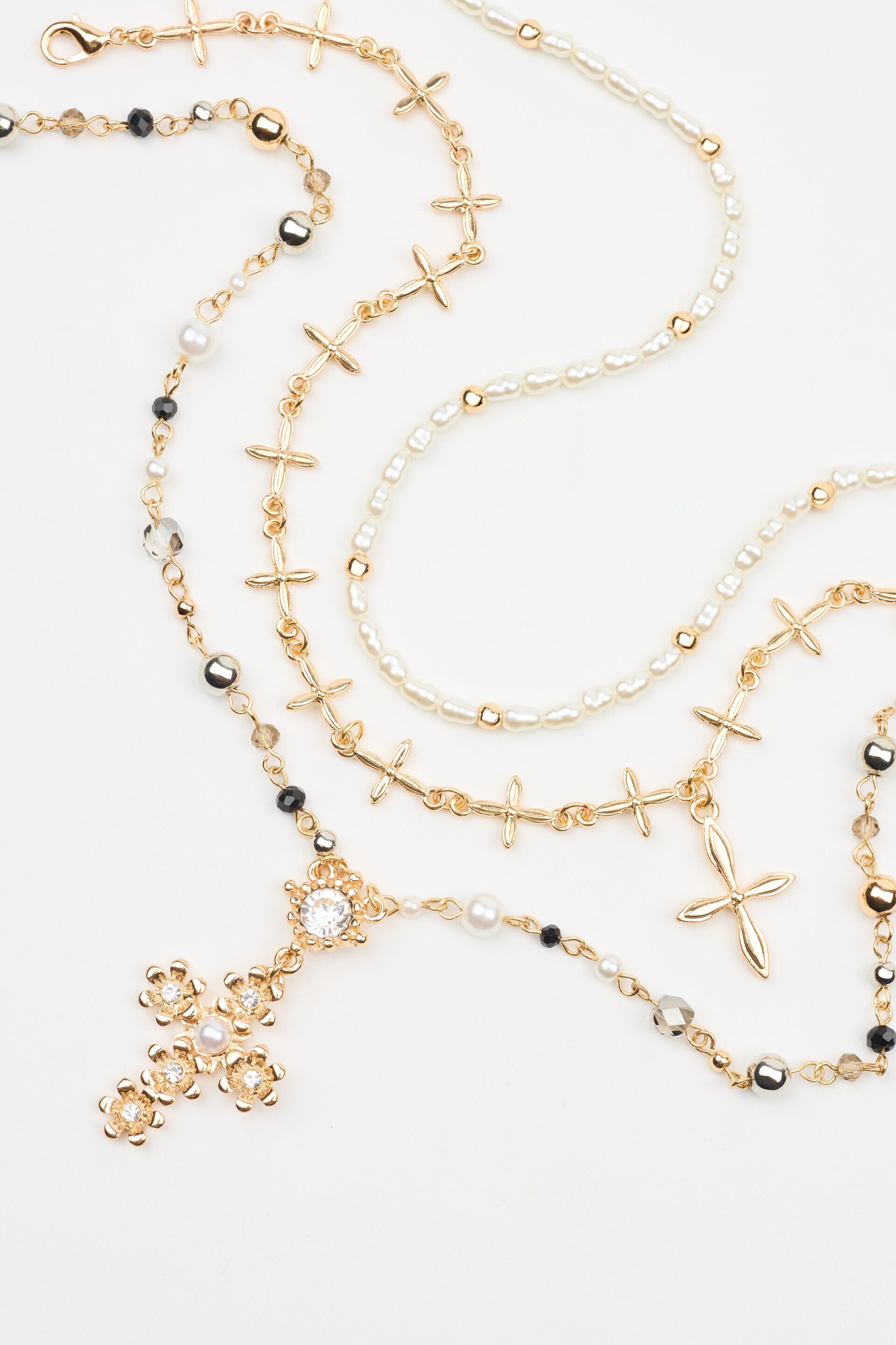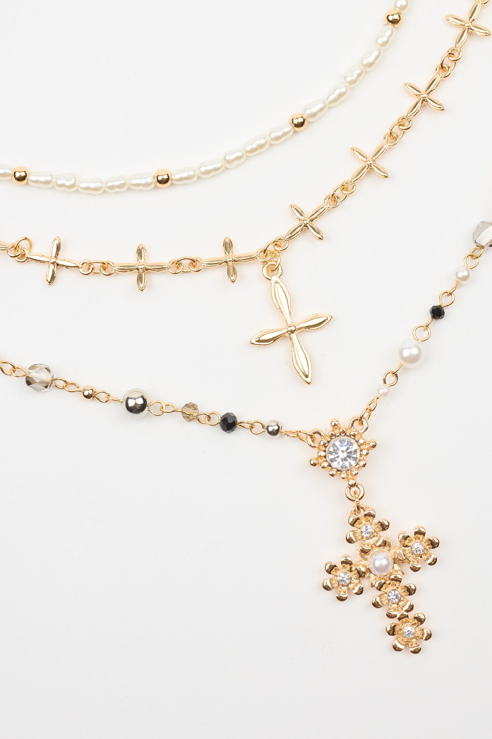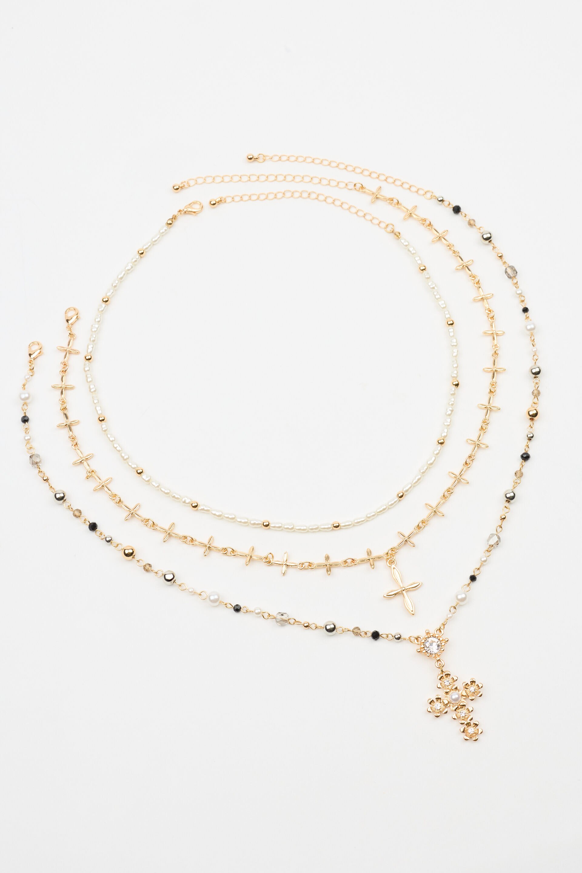 Set of 3 Rosary, Cross, and Pearl Necklaces