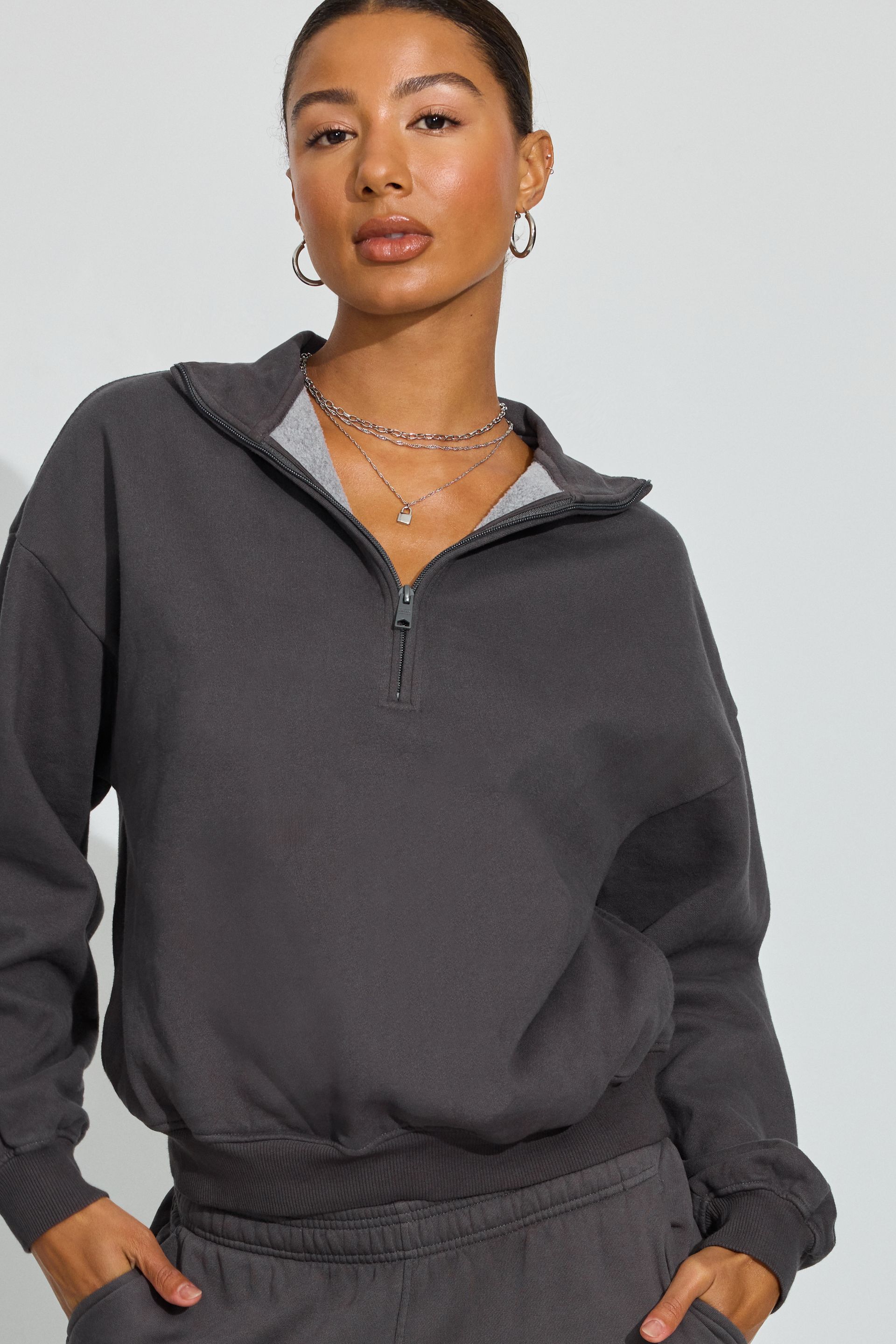- Ribbed hem and cuffs