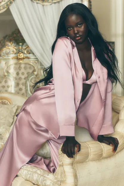 Silk Luminous Button Up - Pink Champagne