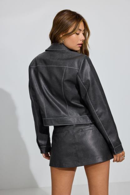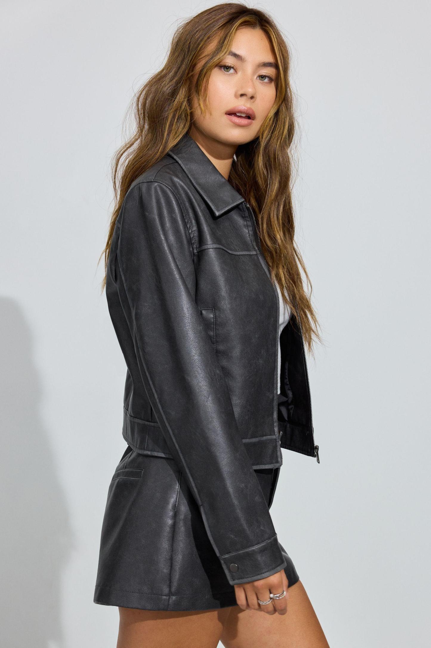 Faux Leather Worker Jacket